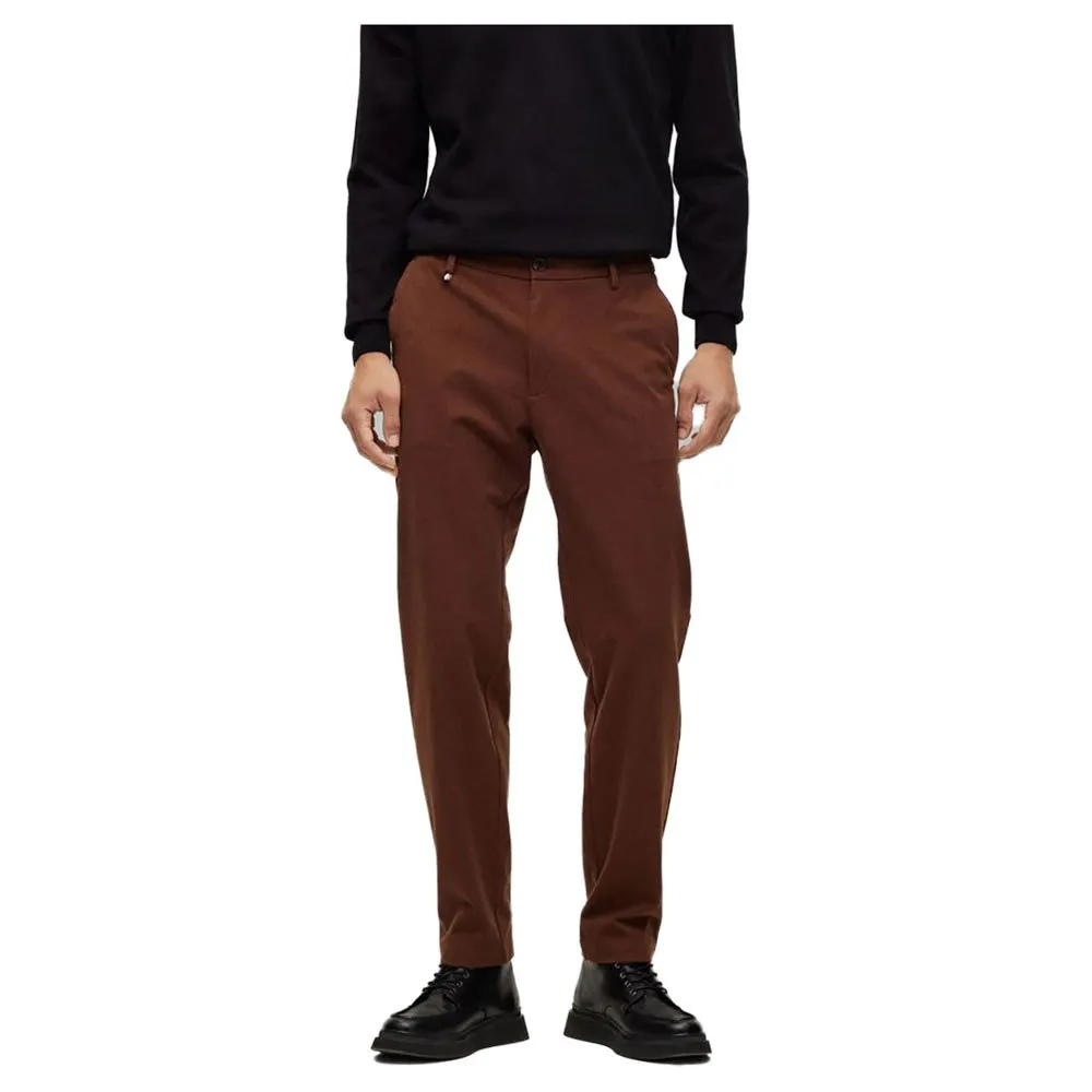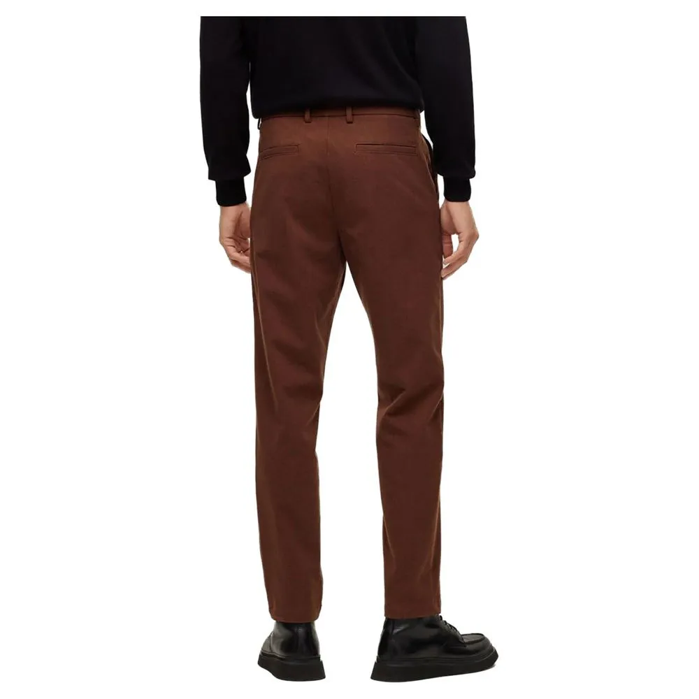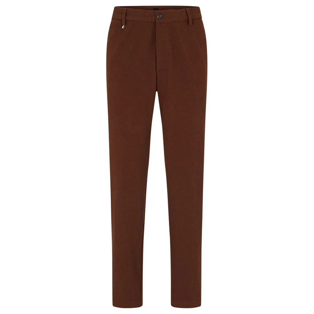 Regular-rise trousers by BOSS Menswear. Featuring an embroidered logo at the back pocket, these trousers are cut to a slim fit with a tapered leg in stretch fabric with a cosy feel. The material has a subtle pattern for versatile styling.