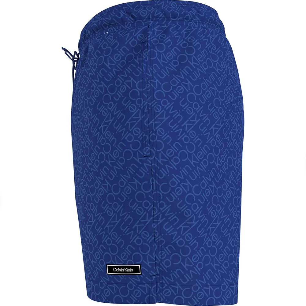 Printed mid-length swimsuit with elastic waistband and drawstring, Calvin Klein logo on lower leg with checkered detailing.