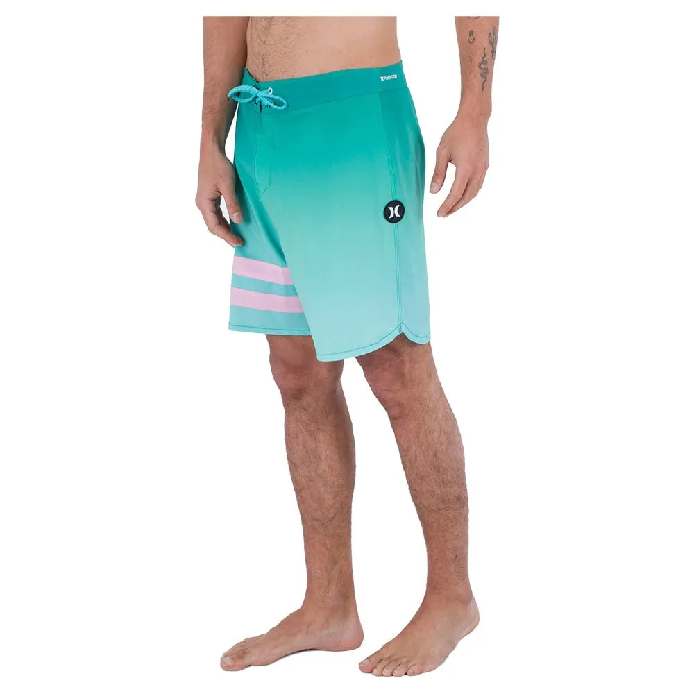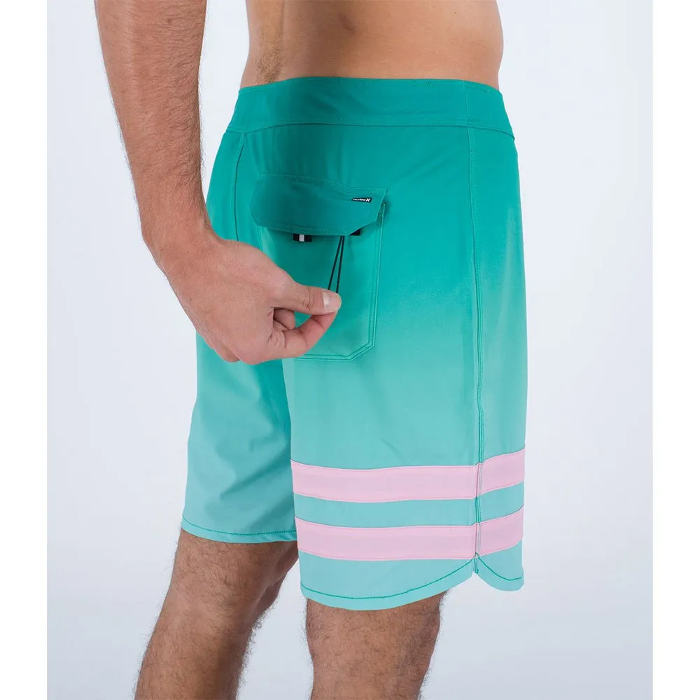 Rock the iconic block party stripes in the lineup with the phantom™-eco block party 18´´ boardshort, a sustainably made swim trunk that provides maximum mobility in the water with four way stretch and an 18” inseam and dries quickly in between sessions for a comfortable wear.