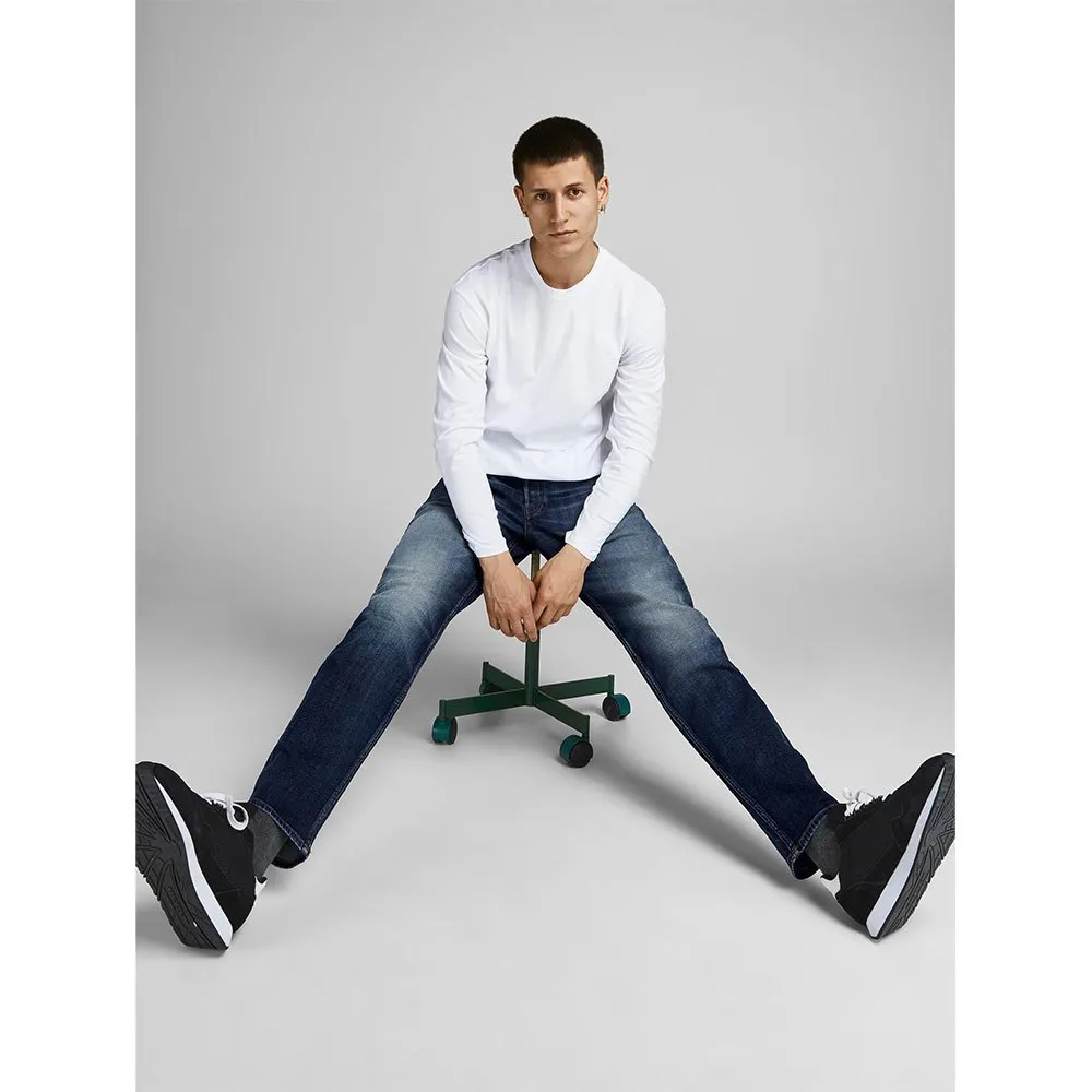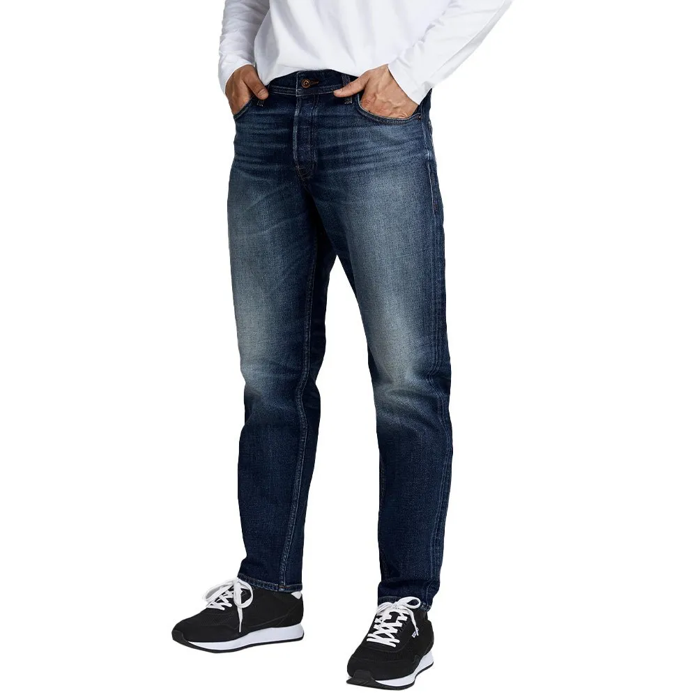 – Comfort fit with a tapered leg and a mid rise