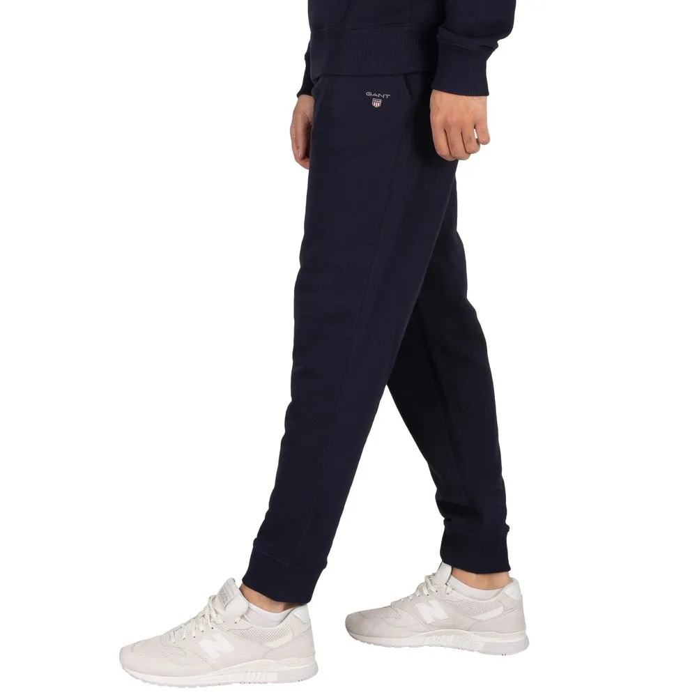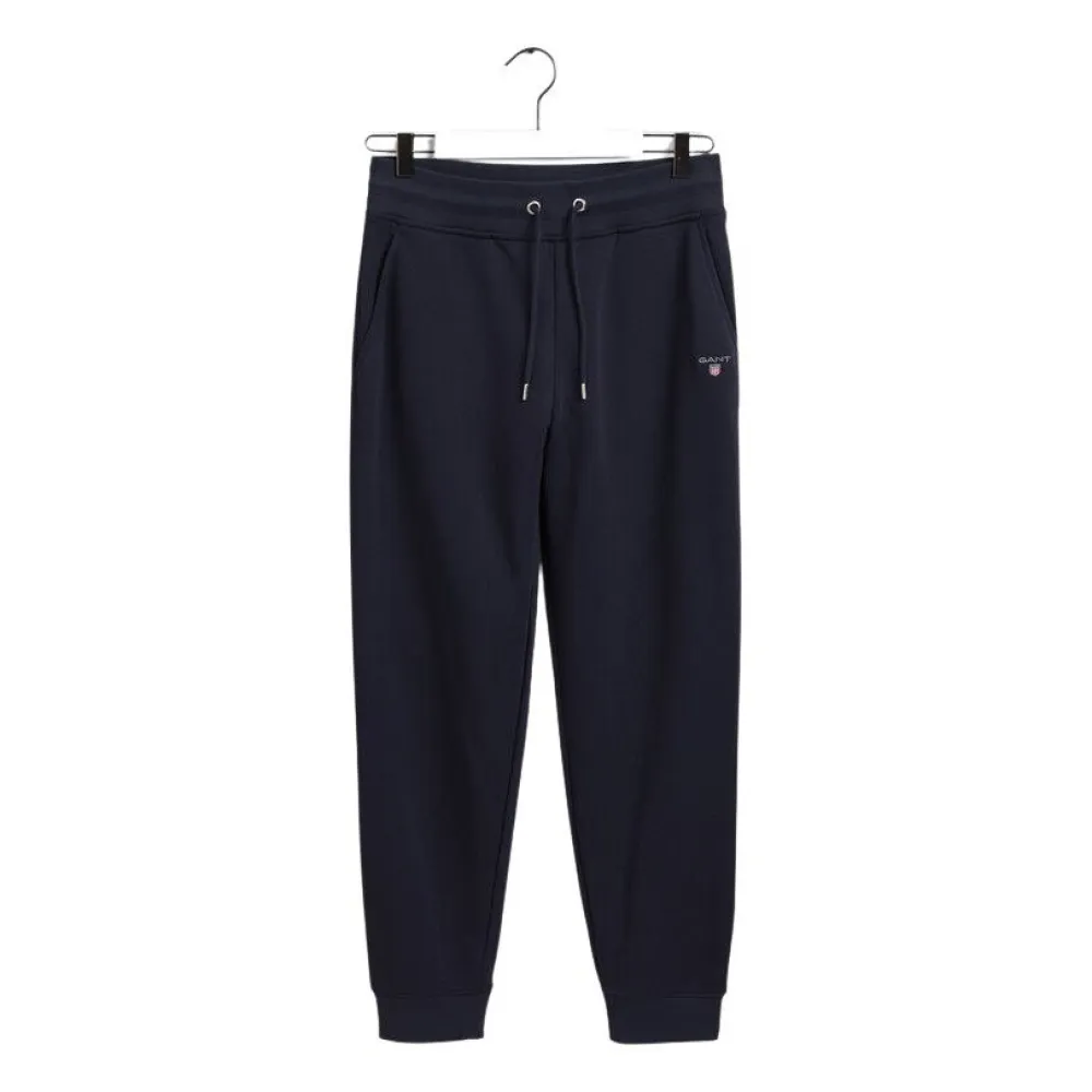 The Original jogging pants from GANT come with open pockets and elasticated ankles, with an elasticated drawstring waist. GANT is proud to invest in making cotton production more sustainable. In an evening blue colour, these jogging pants feature an embroidered logo on the front.
