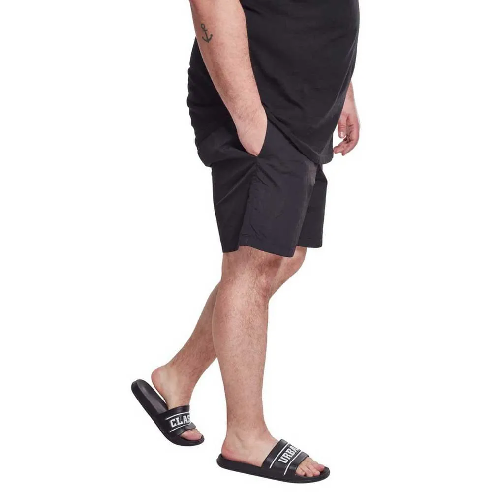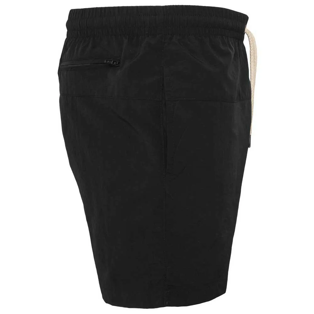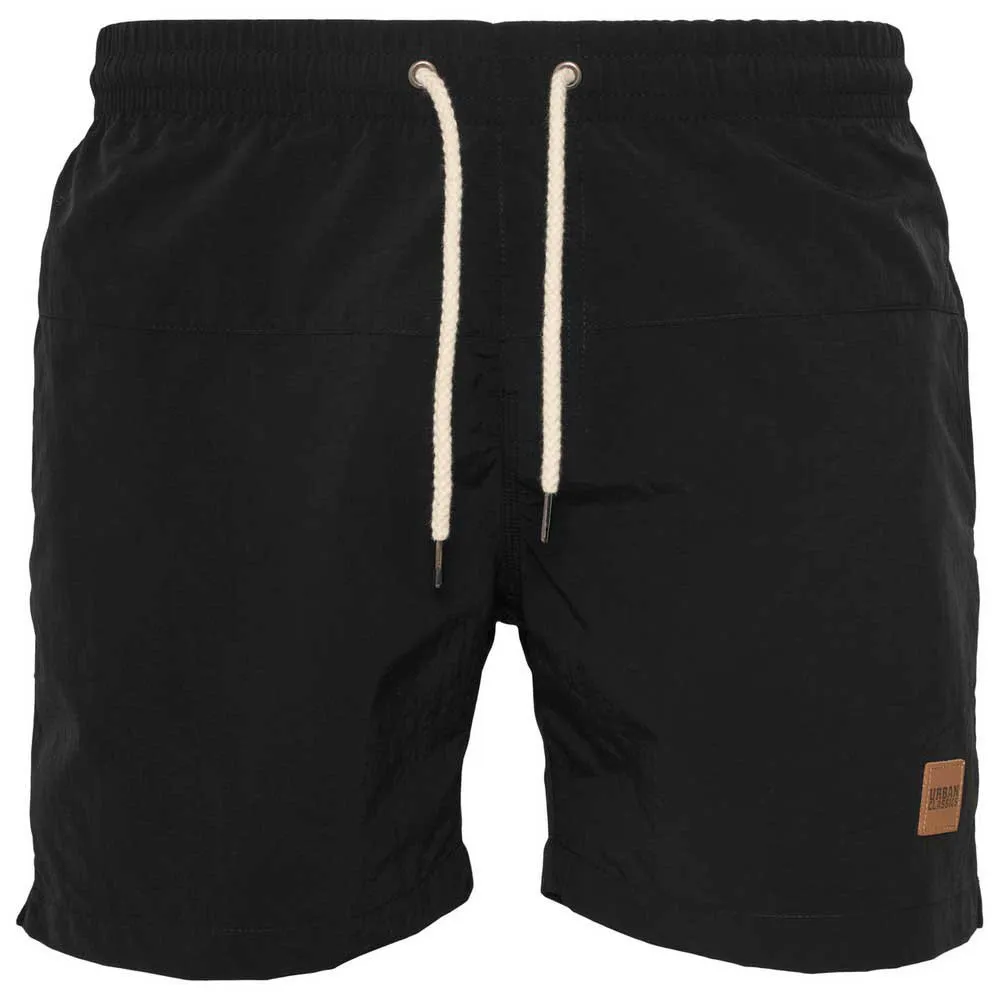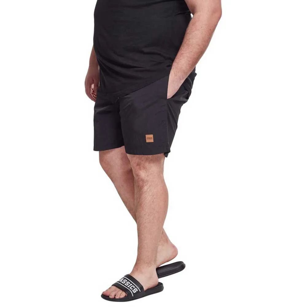 No reason go underground! The Block Swim Shorts from URBAN CLASSICS is your ideal companion for summer. Optic details as the logo patch and the white drawstrings complete the sporty cool look. Two side pockets and one back pocket with zipper offers place for your important stuff.