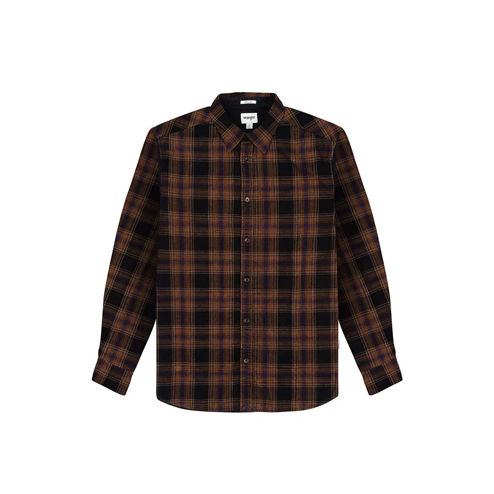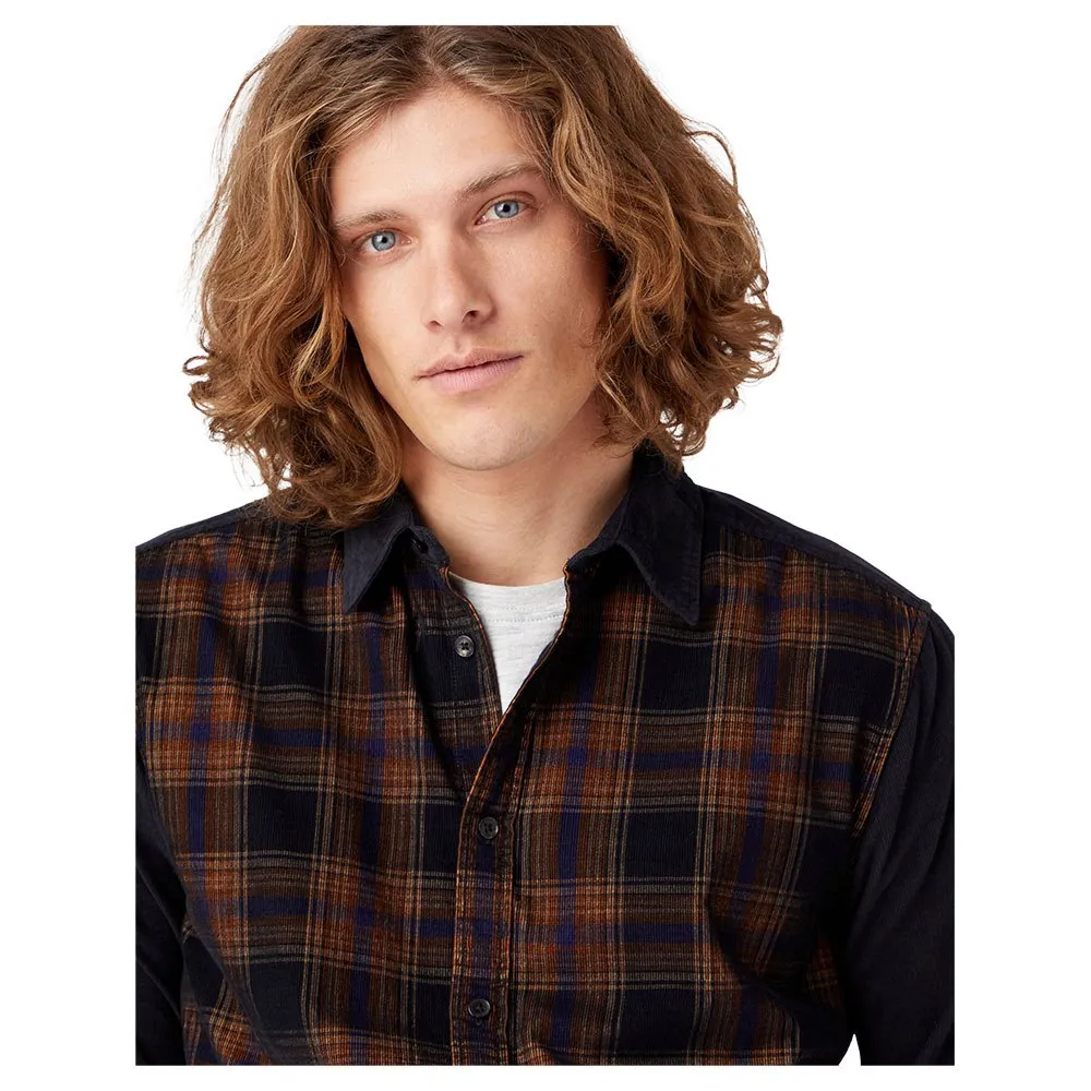 Mixing the classic profile of this long sleeve shirt in a beautiful tri-colour plaid with a corduroy fabric, featuring a pointed collar and contrasting buttons.